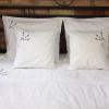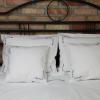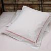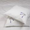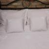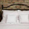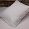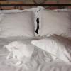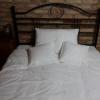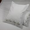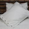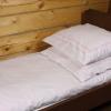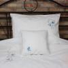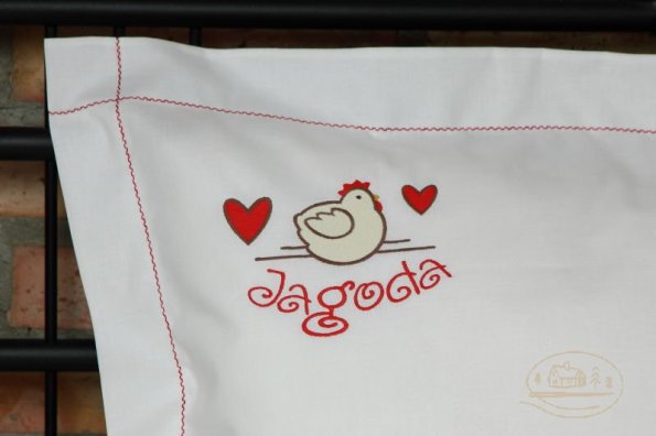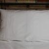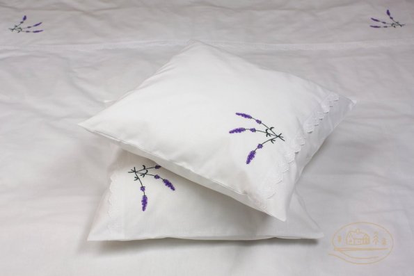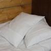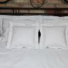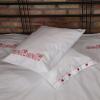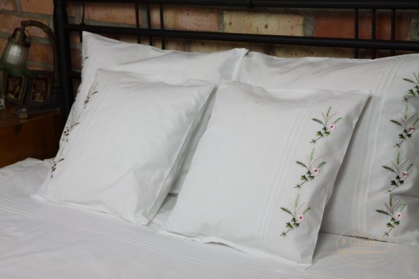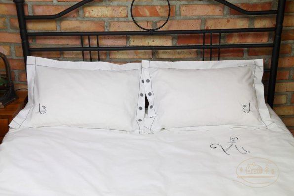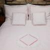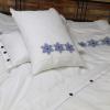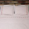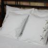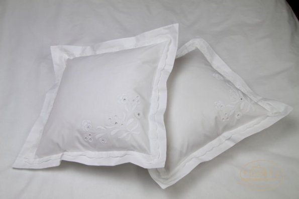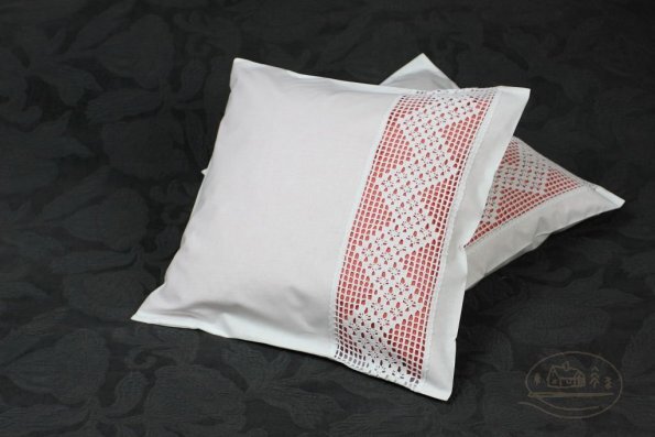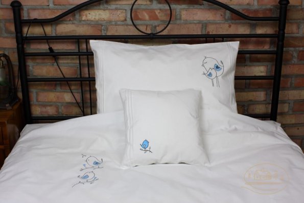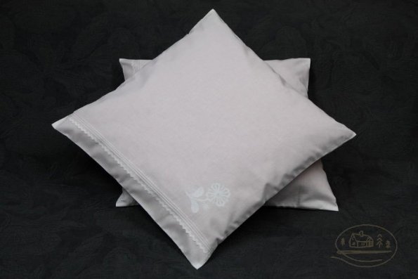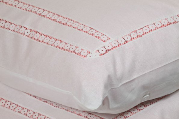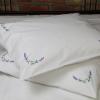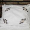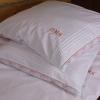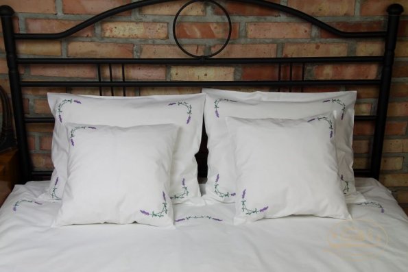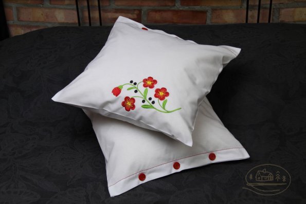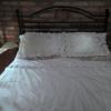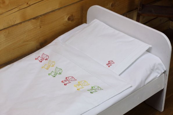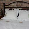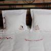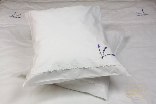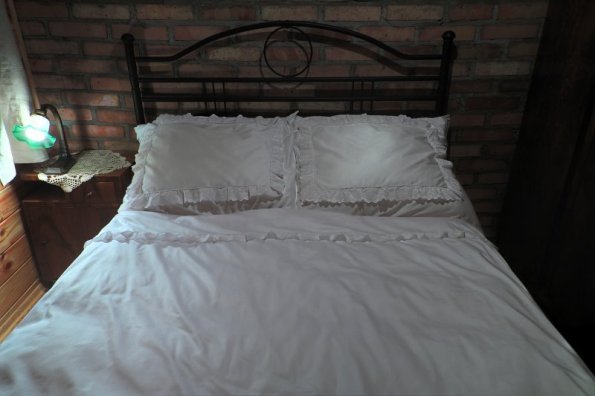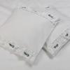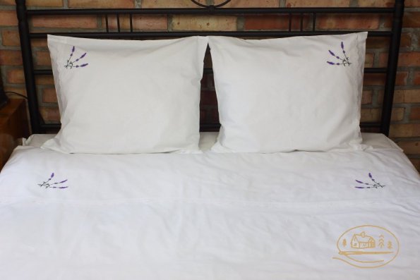 Pościel z białego bawełnianego płótna, ozdobiona koronkami, haftamii szczypankami.